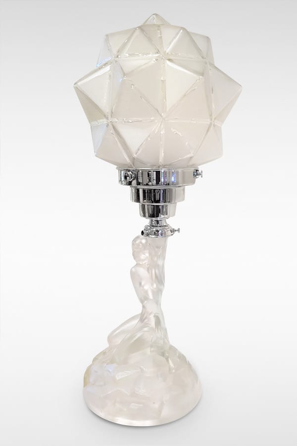 Art Deco Glass Figurine Table Lamp with Starburst Shade