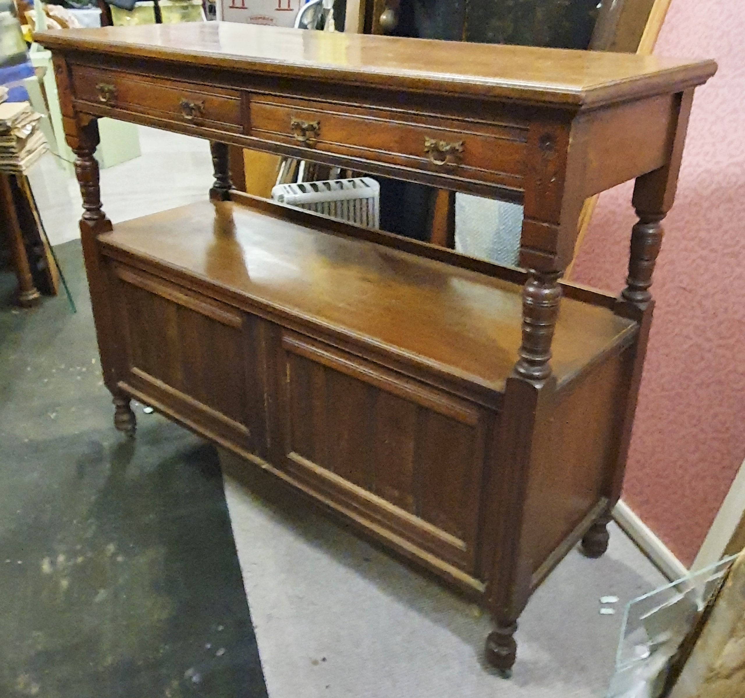 Gothic Revival Walnut Buffet by Edwards & Roberts, with motifs of the Aesthetic Movement. Price includes full restoration using traditional techniques and materials