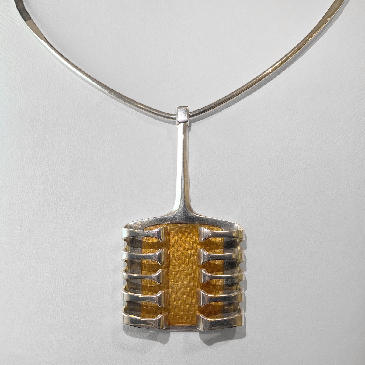 David-Andersen of Norway Silver Pendant and Torque. Scarce yellow enamel version. Circa 1960s to 1970s. Original box. Both pieces are hallmarked and carry the maker’s mark. The company was established in 1876 and is renowned for the quality and design of their enamelwares and silver. Free UK Special Delivery insured.