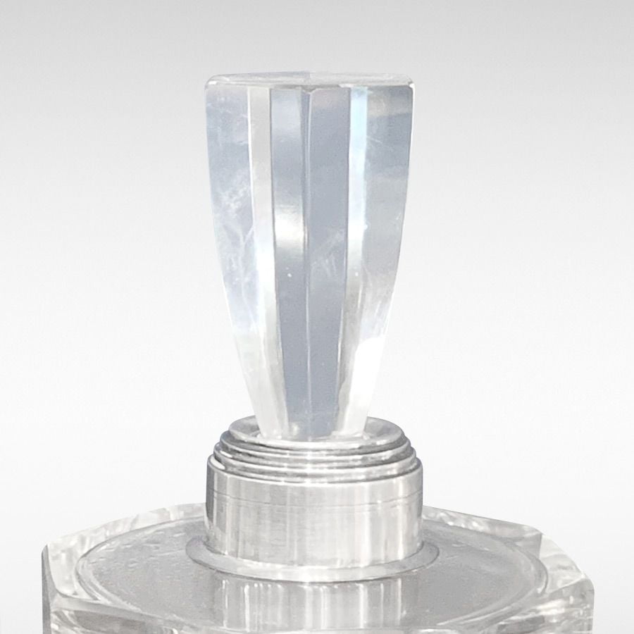 A set of Three Art Deco Perfume Bottles in fine condition. The heavy, facetted glass is Czechoslovakian with French hallmarked silver. Minerva mark. Rare